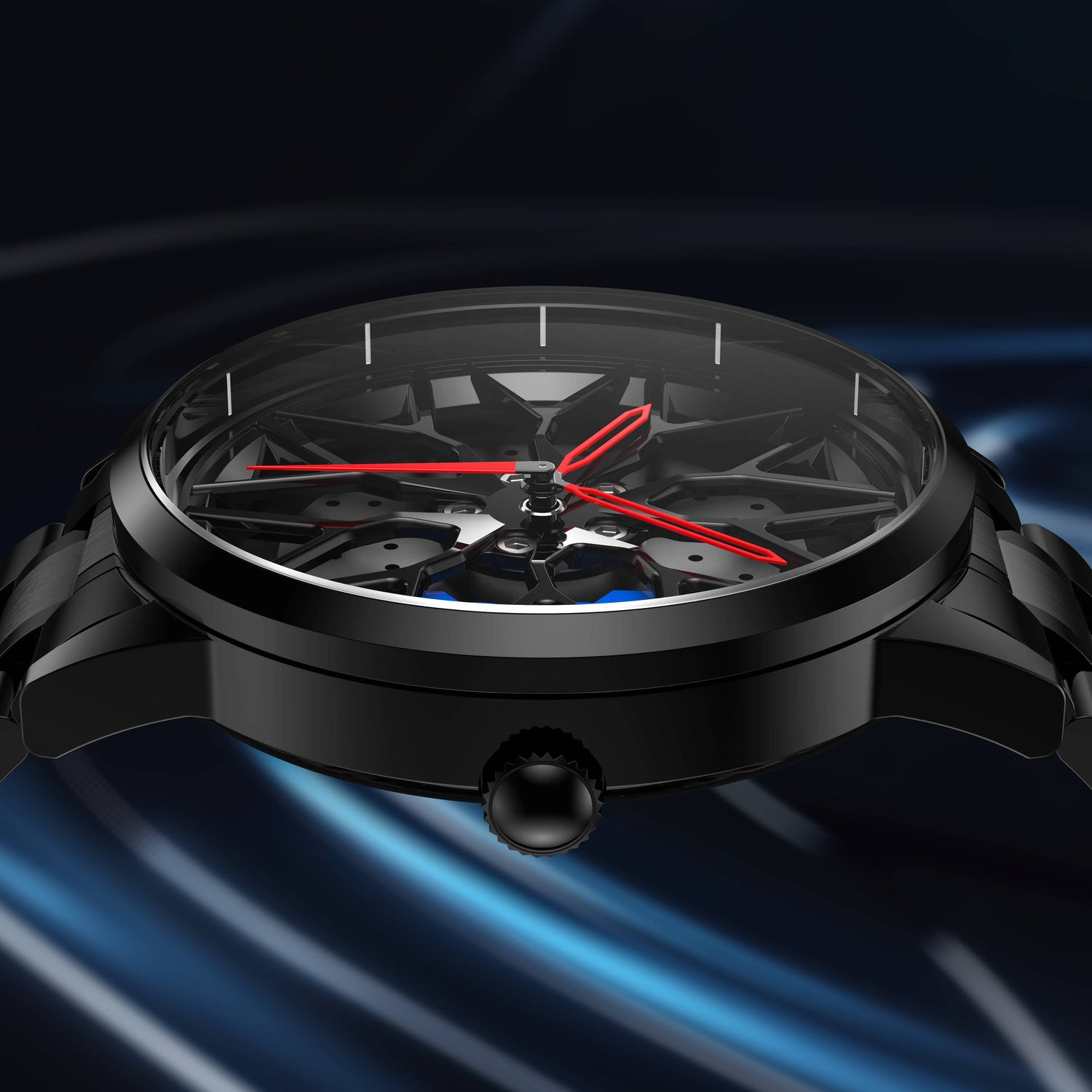 Our world-famous Gyro™ spinning watch face, first introduced by Gyronic to mimic the motion of a real car wheel.